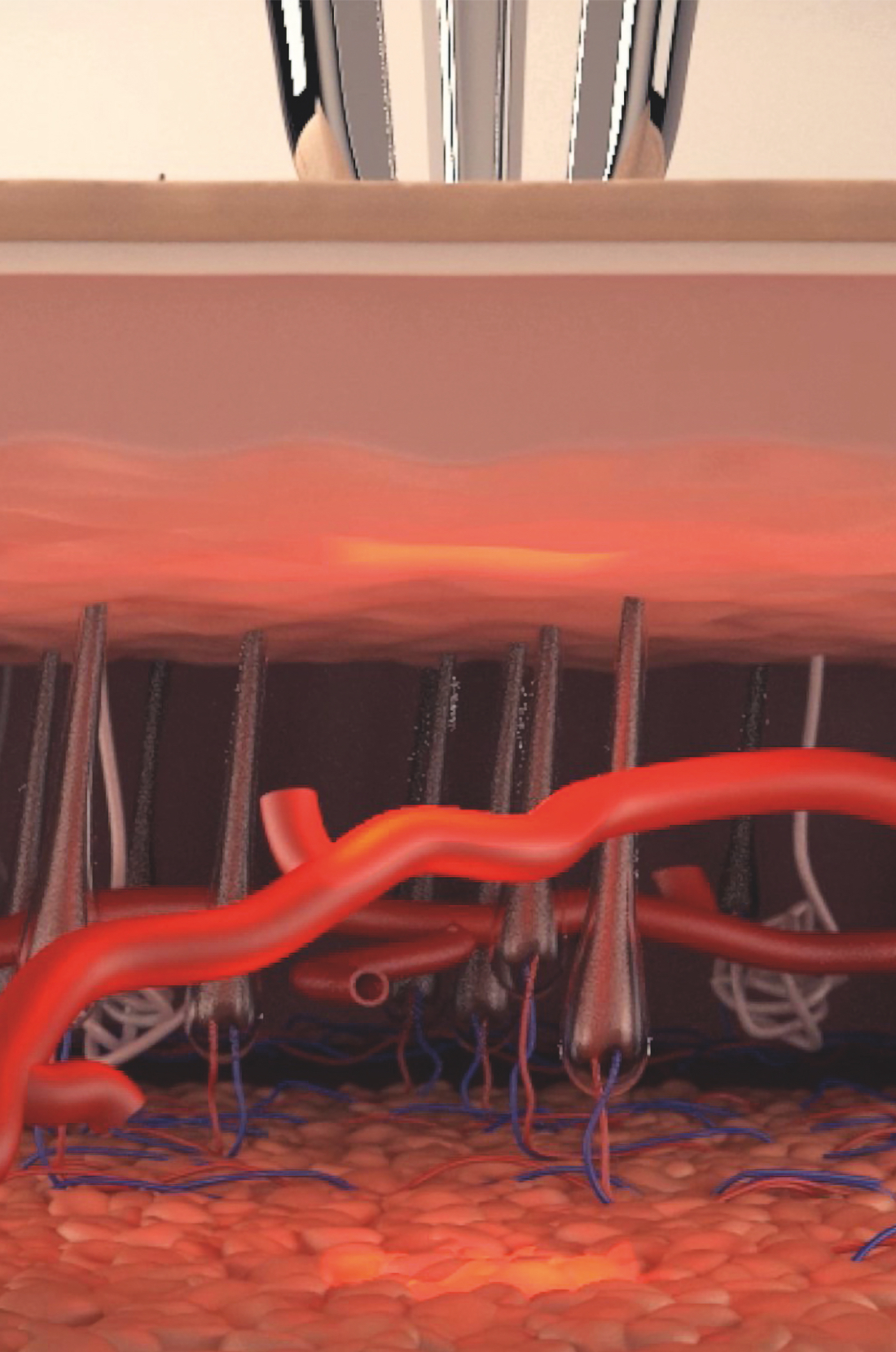 Dans le traitement de photorajeunissement, la lumière émise par l'applicateur stimule la production de nouveau collagène et améliore le teint, la texture et la luminosité de la peau, agissant de manière non invasive, avec précision et rapidité d'exécution.