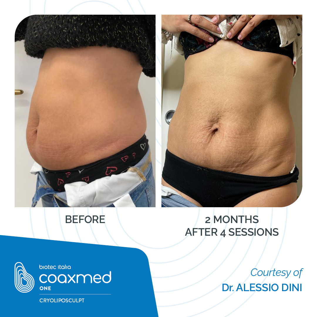 CoaxMed One présente la combinaison révolutionnaire de la radiofréquence monopolaire, bipolaire, fractionnée (RF), des ultrasons basse fréquence, du massage sous vide et de la cryoliposculpture.